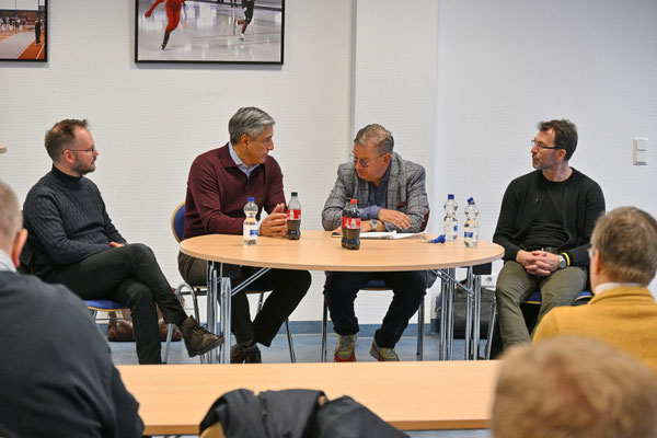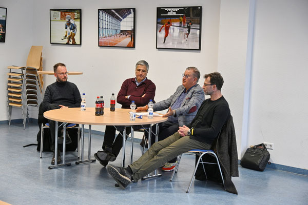 Unter der Leitung des 2. Vorsitzenden Jörg Lubrich diskutierten Berlins Olympiabotschafter Kaweh Niroomand, Sven Felski, der Geschäftsführer Sport der Eisbären Juniors und der Sprecher für Mobilität, Petitionen und Sport der Linken, der Berliner Abgeordnete Kristian Ronneburg.